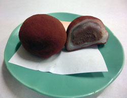 生チョコをミルクあんとやわらかなお餅で包みココアパウダーをまぶしました。(2月のみ限定販売)。