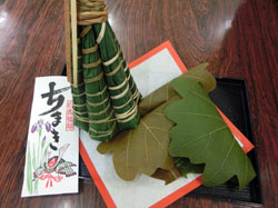 粽は、5月販売分の予約受付中です。5月1日から5日までの限定販売です。(3本束\750、5本束\1,250)